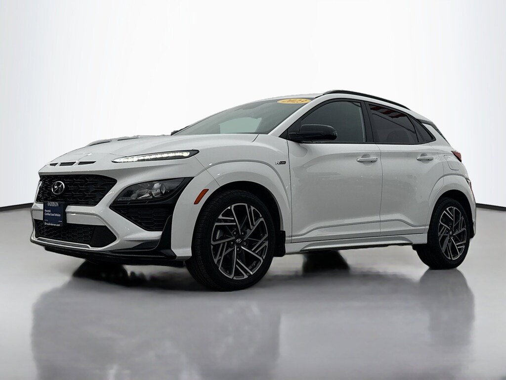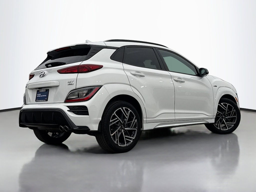 Certified. Lunar White 2023 Hyundai Kona N Line AWD Shiftronic I4